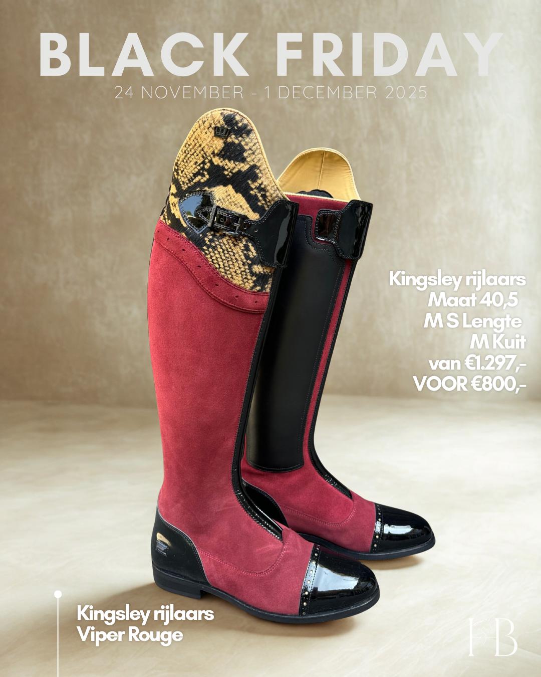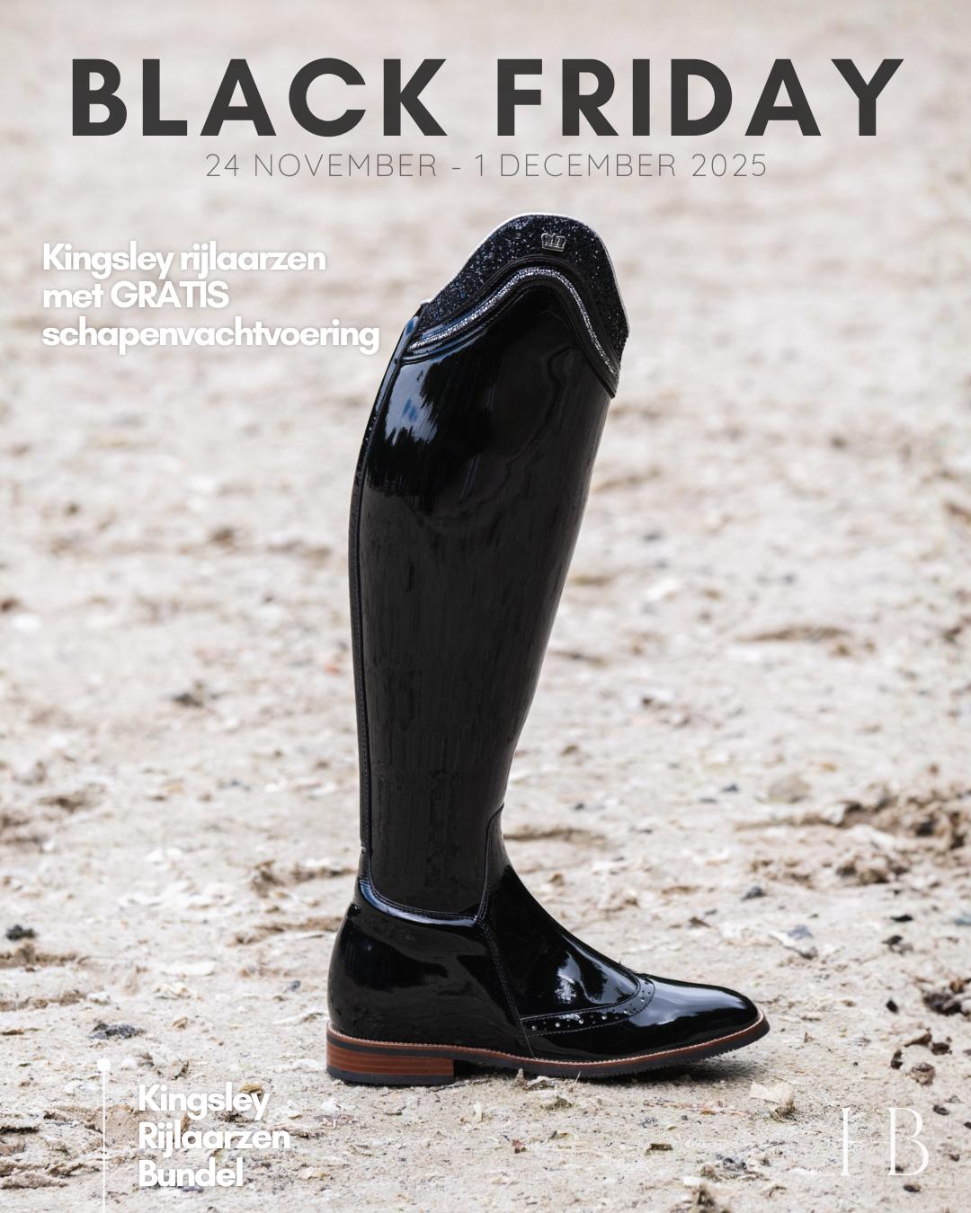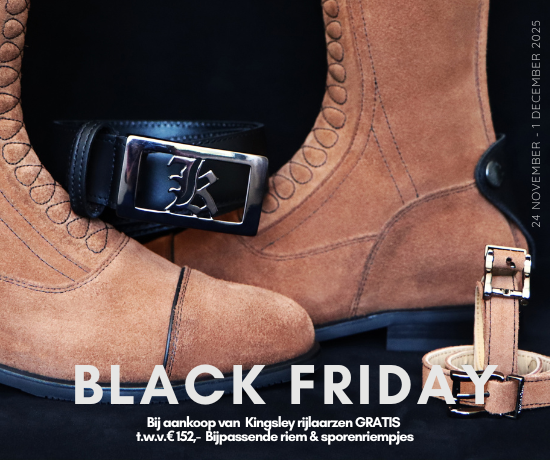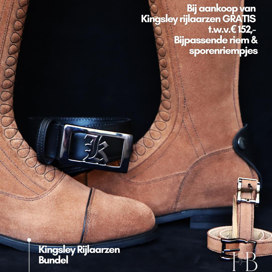 Bij aankoop of het inplannen van een afspraak voor het aanmeten van een paar Kingsley rijlaarzen, krijg je de keuze uit een bijpassende riem met sporenriempjes gratis, óf een gratis schapenvachtvoering.