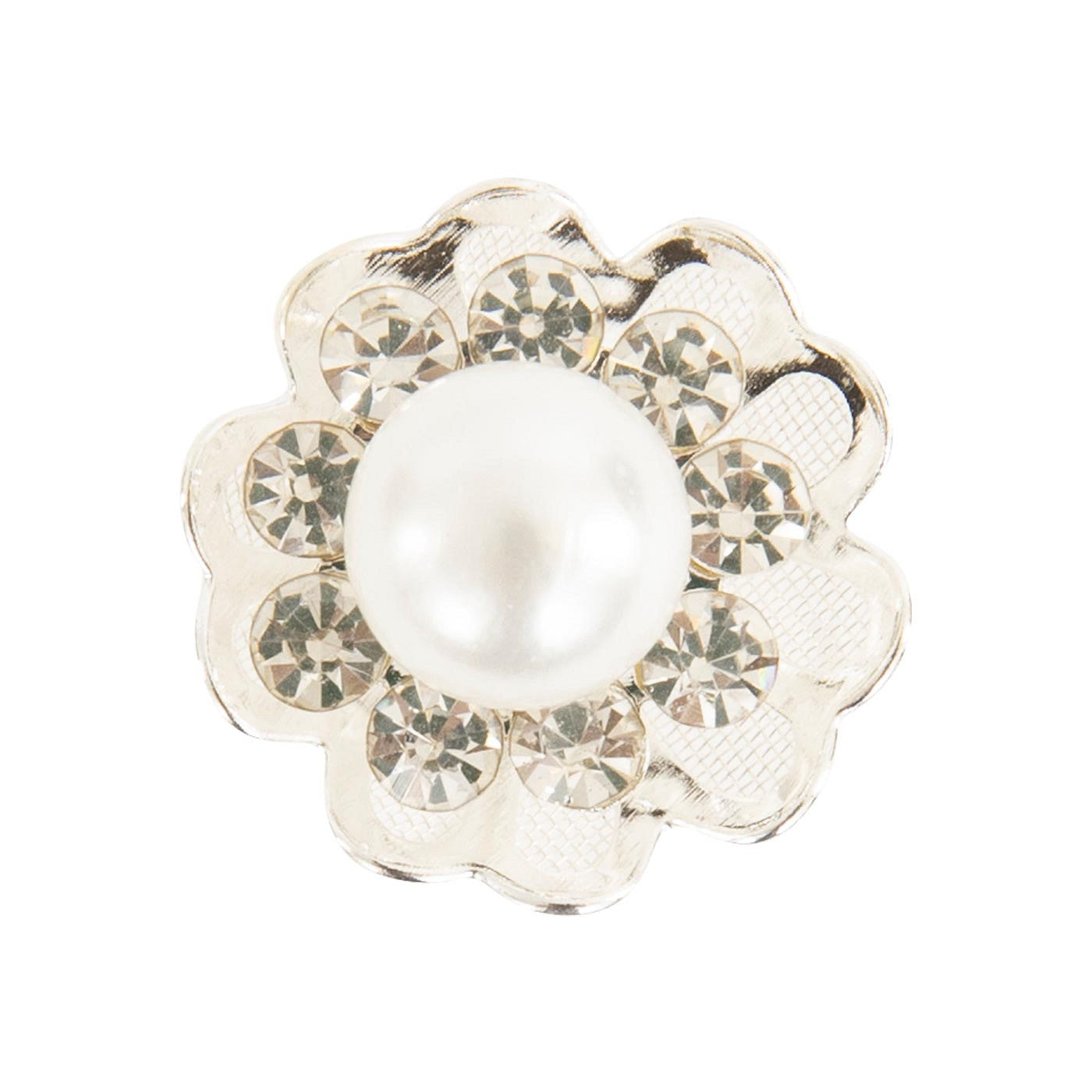 Bun Pin Vancouver has a chic but subtle look. The imitation pearl is surrounded by little imitation diamonds and the bottom layer consists of elegant flower petals with a mesh pattern finished with silver sides.