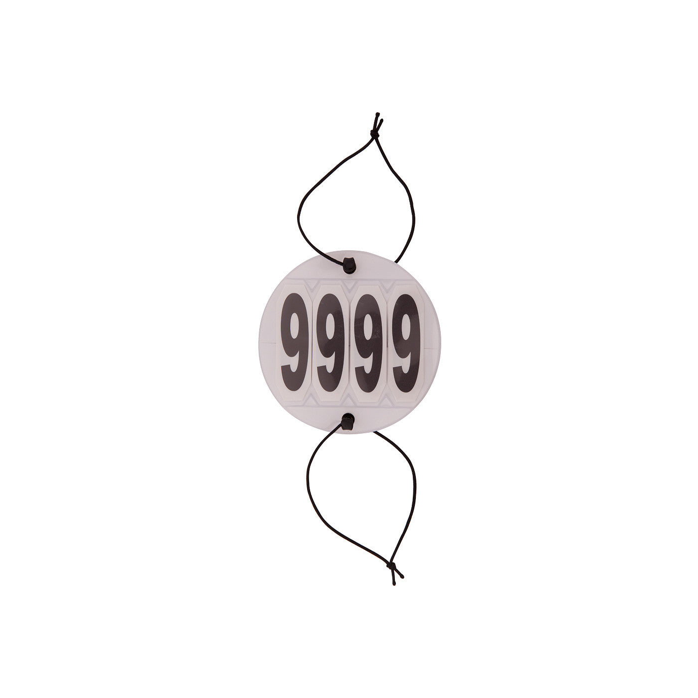 Competition number in round plastic holder, can easily be attached to the bridle by means of two elastic bands. Can also be attached to the saddle pad by means of two safety pins (not included). The numbers are clearly legible and can be changed from 0000 to 9999. The holder has a diameter of 10 cm. Per pair.