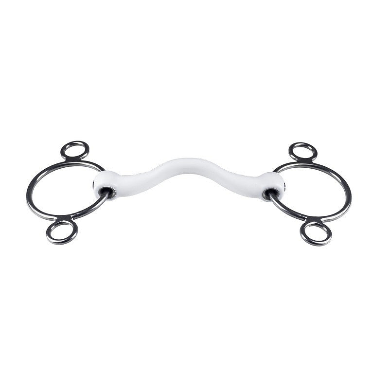 A 3-ring cheekpiece, also known as the Pessoa, is designed to create a leverage effect. The lower the reins are placed, the more influence the bit will have. With this cheekpiece pressure is applied to the poll, just behind the ears, offering direct control. It’s important to understand that too much pressure on the poll can cause discomfort or harm to a horse, so this bit should be used with care and a clear understanding of its impact.