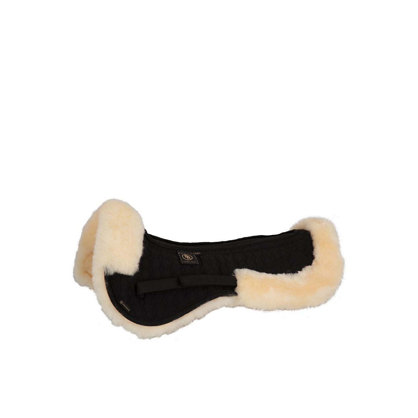 Cotton half pad with a medicinal sheepskin underside and border. The half pad has a channel down the spine made of Air Mesh. The Air Mesh insert increases the circulation of air and thus prevents overheating.